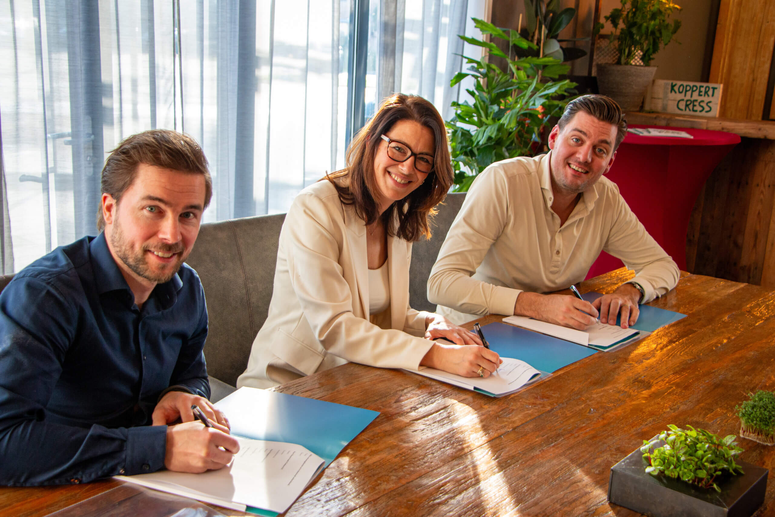 v.l.n.r: Dave van Os – Projectleider Division Q, Charlotte Langerak-Visser – CEO Viscon Group & Stijn Baan – Algemeen Directeur Koppert Cress